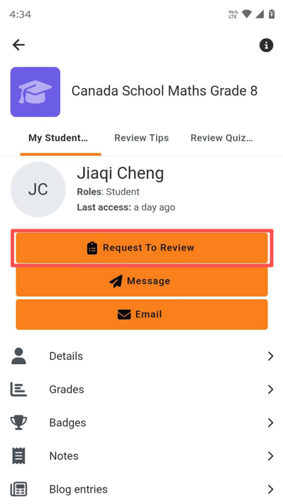 Or you can search any student by their first name or last name, then click "Request To Review" button: