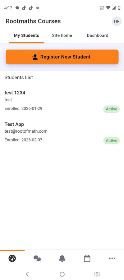 4.Register your new students by My Students->Register New Student.
